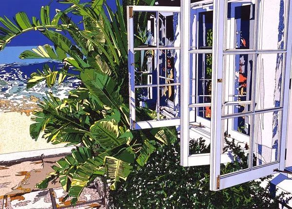 鈴木英人という版画家がいます。一番好きな版画家です。 古き良き時代の裕福で平和なアメリカを描いた中期の作品群は見ていて本当にわくわくします。 ポルシェのオープンを描いた作品も有名なのがあります。 その英人が描いたような光景が、WEST ENDのホテルにありました。